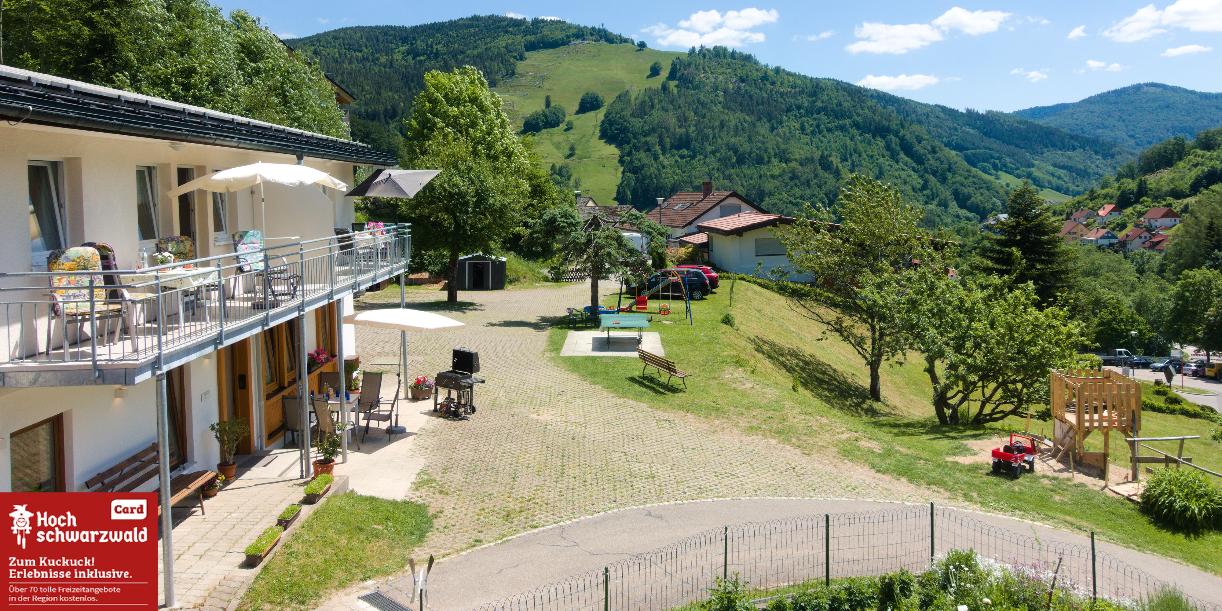 In unseren zwei Häusern in der Sonnhalde 45 und der Sonnhalde 32 (Apartments Neschtle und Weitblick) finden Erwachsene und vor allem Kinder genügend Platz zum spielen und die Gegend erkunden.